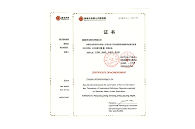 2022年毒性病理檢測(cè)實(shí)驗(yàn)室室間比對(duì)合格證書