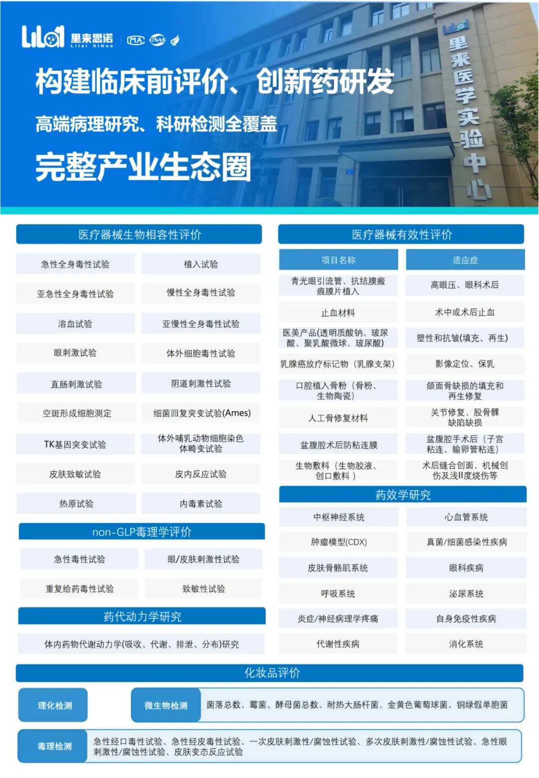 截至目前,里來思諾已完成醫(yī)療器械生物材料評(píng)價(jià)領(lǐng)域,化妝品評(píng)價(jià)領(lǐng)域的CMA資質(zhì)認(rèn)定,可出具符合國(guó)家有關(guān)法律、行政法規(guī)標(biāo)準(zhǔn)、具有證明作用的數(shù)據(jù)和結(jié)果。