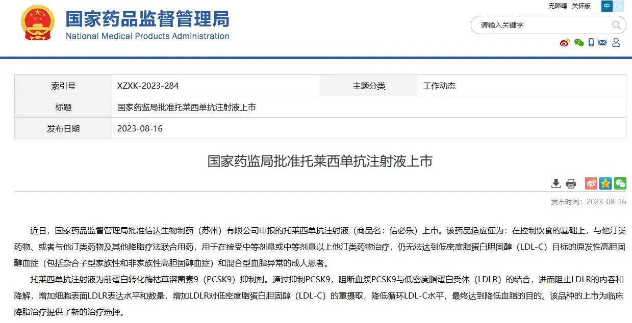 05 國家藥監(jiān)局批準(zhǔn)托萊西單抗注射液上市