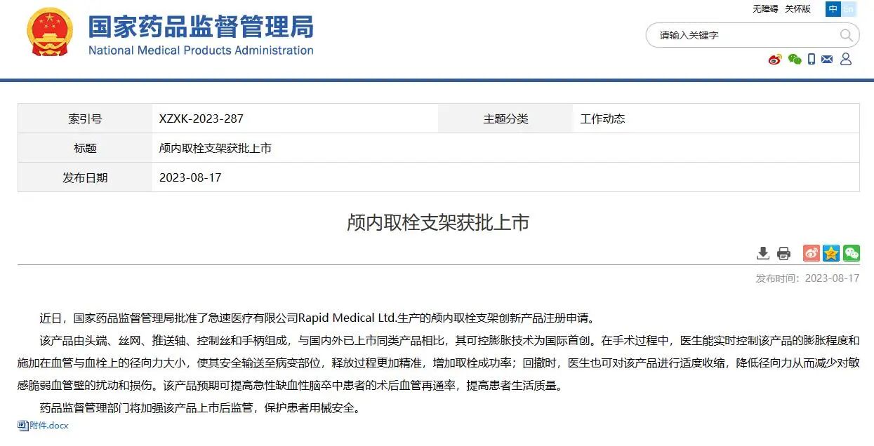 06 顱內(nèi)取栓支架獲批上市