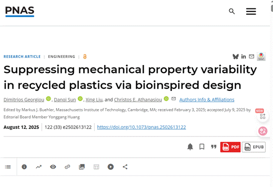 近日, Georgia 理工學(xué)院研究團隊借鑒自然界堅固結(jié)構(gòu)的設(shè)計原理,開發(fā)出一種創(chuàng)新工藝,顯著抑制了再生塑料固有的機械性能波動問題。航空航天工程助理教授Christos Athanasiou領(lǐng)導(dǎo)了這項研究,相關(guān)成果發(fā)表在《PNAS》期刊上。