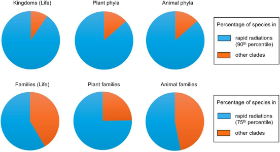 圖3:屬于快速輻射和其他進化枝、跨生命和跨植物和動物的物種百分比。
