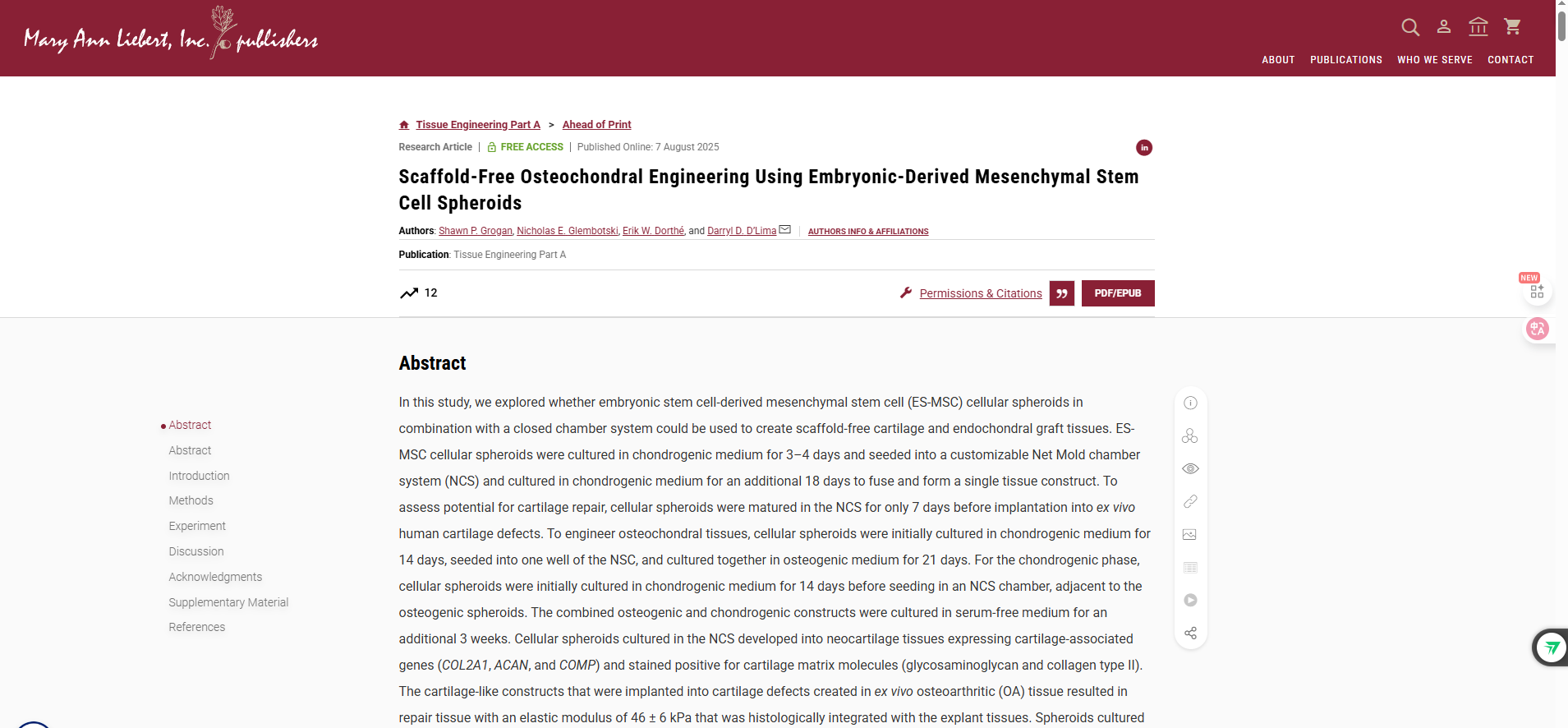 無支架骨軟骨工程新突破:胚胎干細胞球體實現(xiàn)融合性組織構(gòu)建