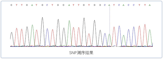 在所有SNP的檢測(cè)方法中,對(duì)待檢測(cè)片段進(jìn)行直接擴(kuò)增、測(cè)序是最為準(zhǔn)確的方法,也是SNP分析的金標(biāo)準(zhǔn)。純合型SNP位點(diǎn)的測(cè)序峰為單一峰型,而雜合型SNP位點(diǎn)的測(cè)序峰為套峰,因而很容易將其區(qū)分開來。